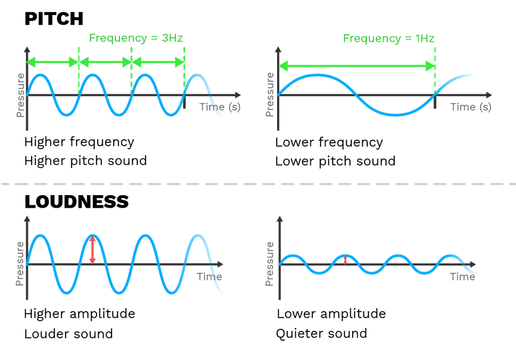 - Pitch(음의 높낮이)는 초당 진동 수(주파수)에 의해 결정되며, 높은 주파수일수록 높은 음을 형성한다.