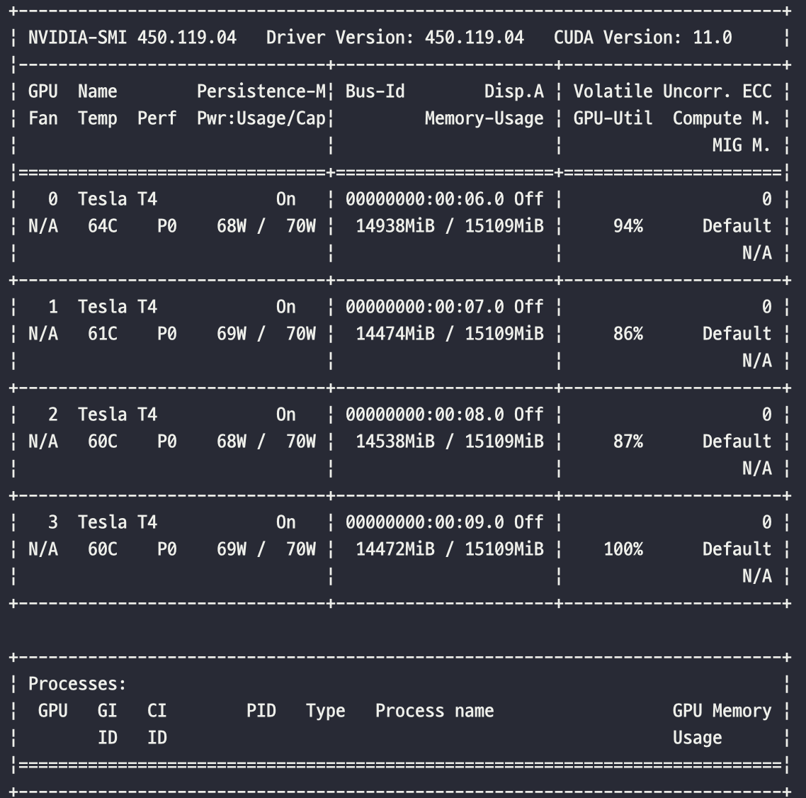 현재 저는 다른 컨테이너를 통해 GPU를 사용하고 있기에 사용률이 0%가 아닌점을 참고해주시길 바랍니다.