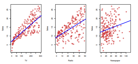 - 그림은 통계 학습을 설명하기 위해 광고 단가 대비 매출을 나타낸다.