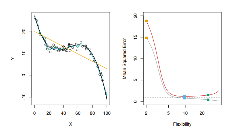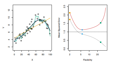 - 회귀와 분류에서 올바른 수준의 모델 유연성을 선택하는 것은 통계 학습방법 성공에 아주 중요하다.