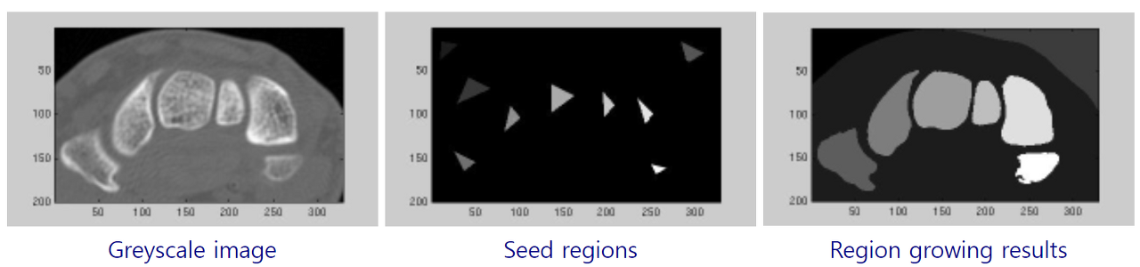 - Seed 픽셀 또는 픽셀 집합을 통해 특정 기준을 충족하는 인접 픽셀을 영역에 반복적으로 추가합니다.