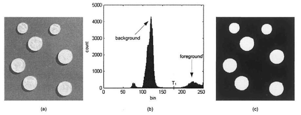 - 일반적으로 Binary image에는 배경과 전경으로 나누어져 있으며 이는 임계값보다 작은 픽셀값을 포함하고 있는 배경과 다른 하나는 임계값 이상인 전경으로 나눌 수 있다.